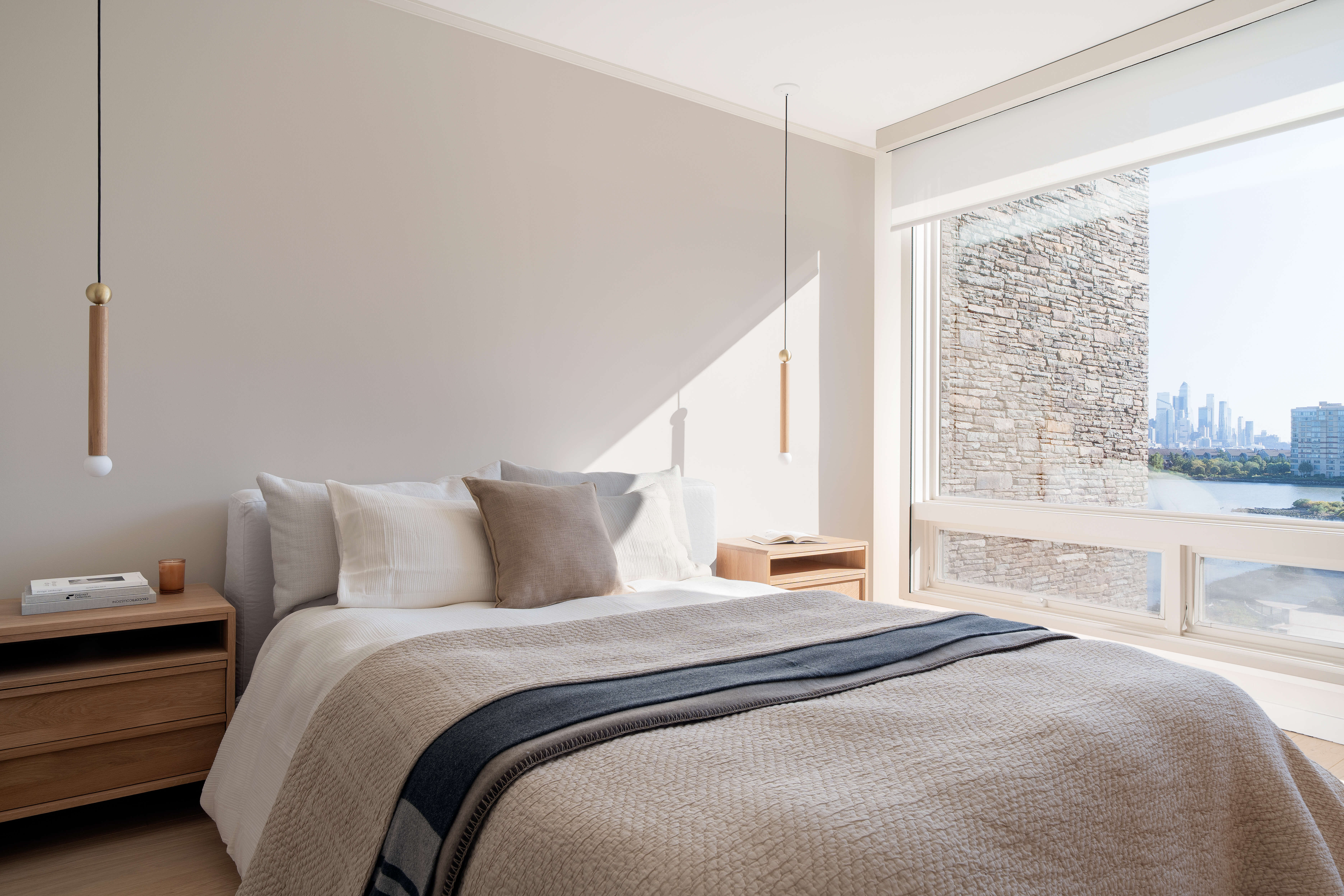 Perched along the banks of the Hudson River, this Edgewater residence was transformed into a serene refuge for international clients seeking respite from the pace of their demanding professional lives. Located just across from Manhattan, the home offers a calming counterpoint to the energy of the city, where views of the skyline and the water frame every moment.