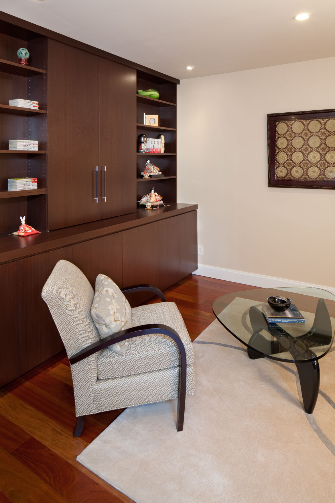 In this Mt. Laurel, NJ residence, YZDA embraced the client’s desire to evoke cherished childhood memories of Japan by crafting an interior space with a Zen-like spirit that radiates serenity and a modern yet timeless aesthetic. The design captures the essence of calm and harmony, offering a peaceful retreat that feels both deeply personal and universally inviting. The family room was envisioned as a comfortable sanctuary for everyday living, with a chic atmosphere perfect for sophisticated entertaining.
